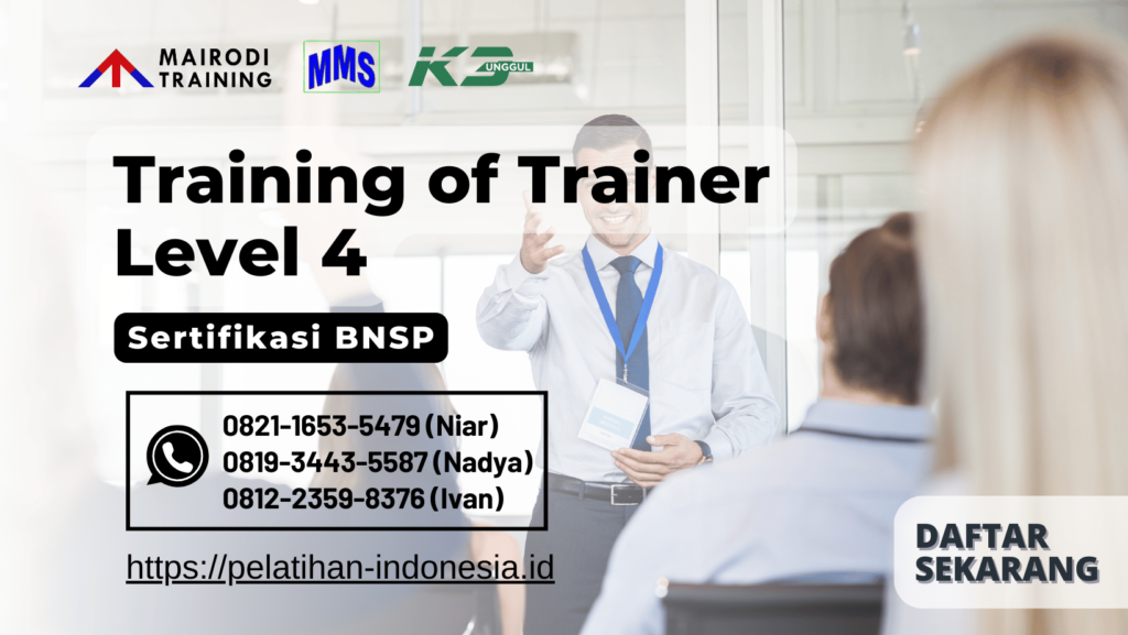 Setiap langkah kesuksesan sebuah pelatihan dimulai dari keahlian seorang trainer dalam membimbing dan menginspirasi peserta. Namun, banyak profesional yang memiliki pengetahuan mendalam tetapi kurang mampu menyampaikan ilmunya secara efektif. Untuk menjawab kebutuhan ini, Mairodi Training menawarkan program Training of Trainer (ToT) BNSP, dirancang untuk mengubah pengetahuan menjadi keterampilan mengajar yang diakui secara resmi.
